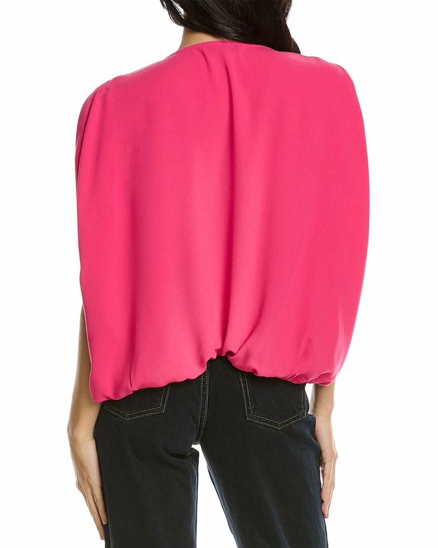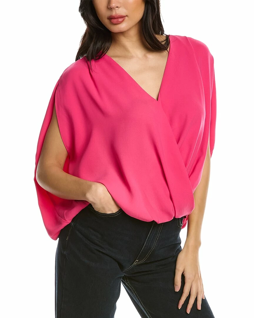 - Deep Well Top In P.S. Pink With Surplice Front, Slit Dolman Sleeves, And Gathered Hem