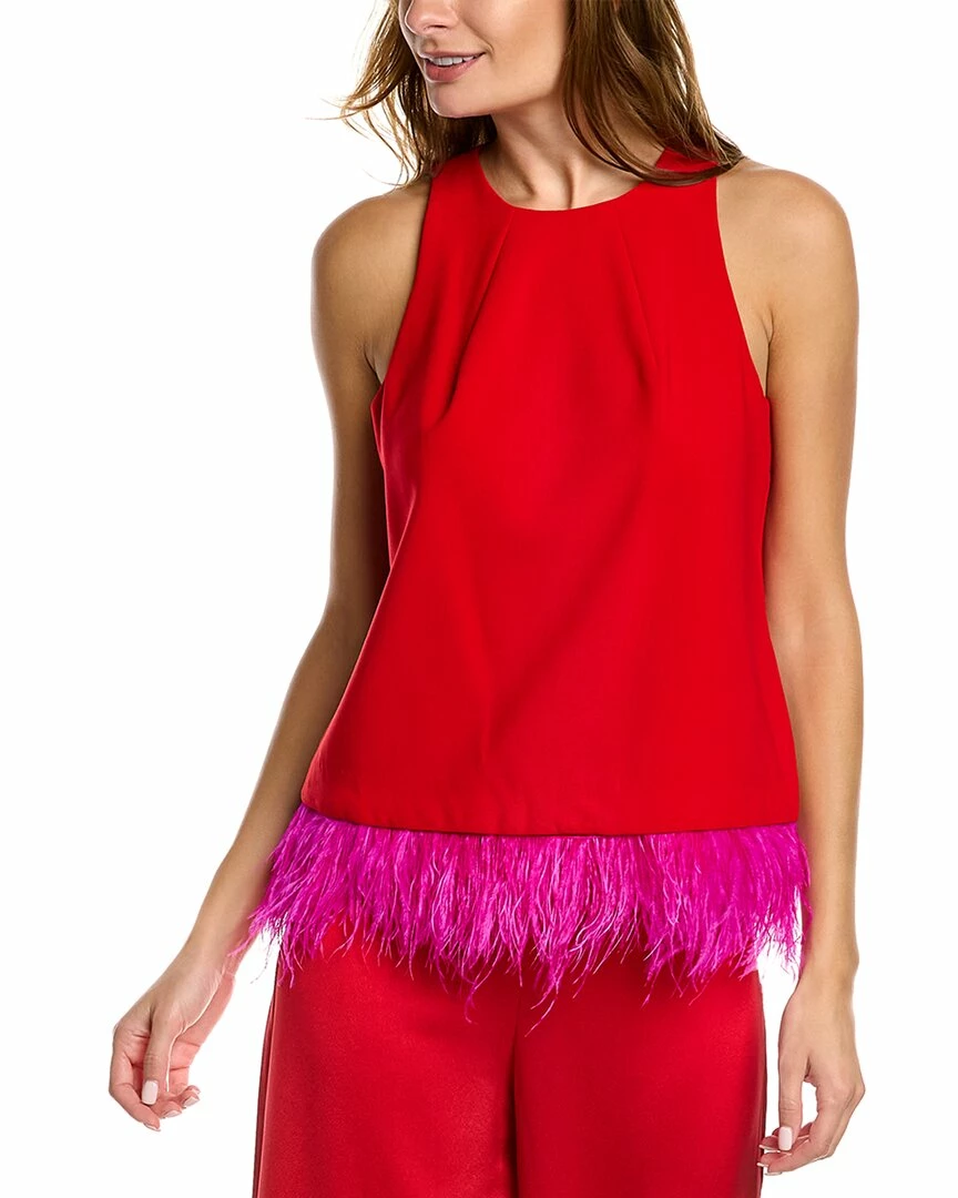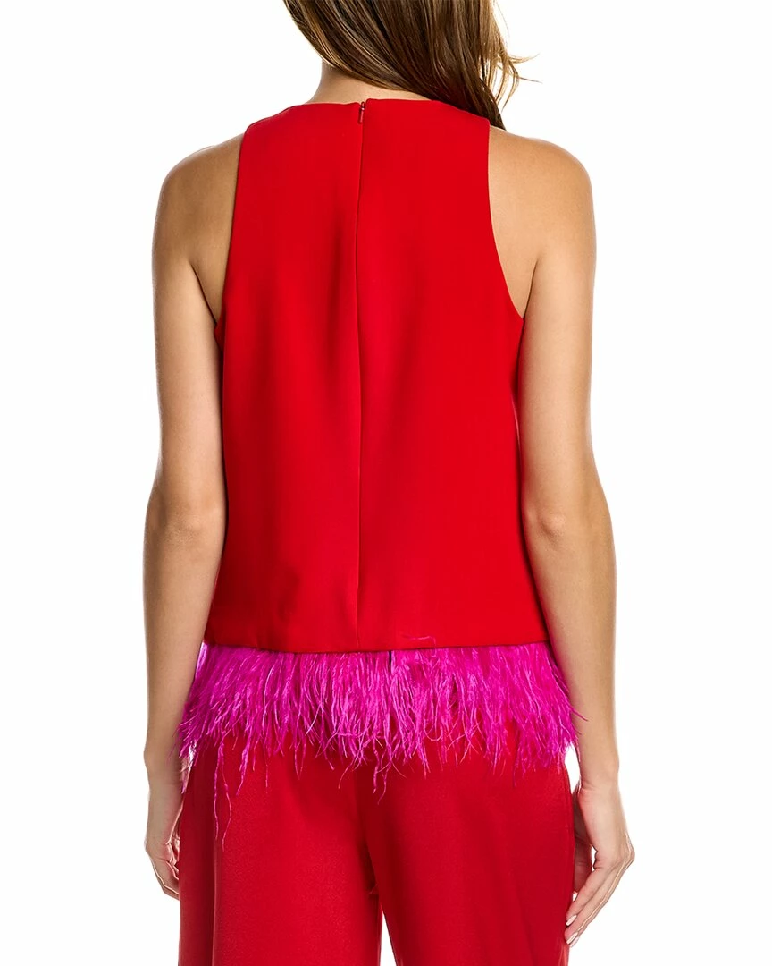 - Eero Tank In Ribbon Red With Removable Feather Trim At Hem