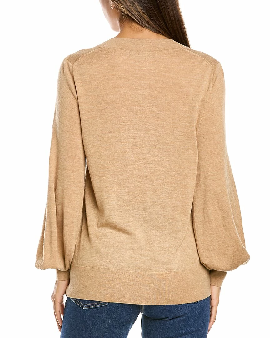 - Evening Sun Wool Sweater In Camel With V-Neck And Blouson Sleeves