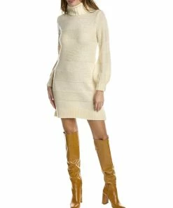 - Fosse Wool-Blend Sweaterdress In Ecru With Turtleneck And Balloon Sleeves