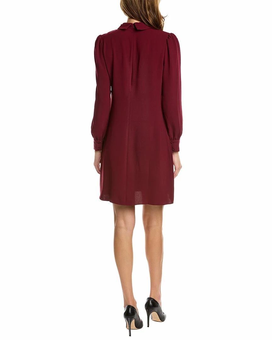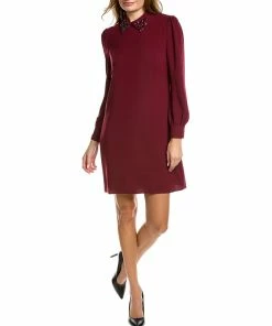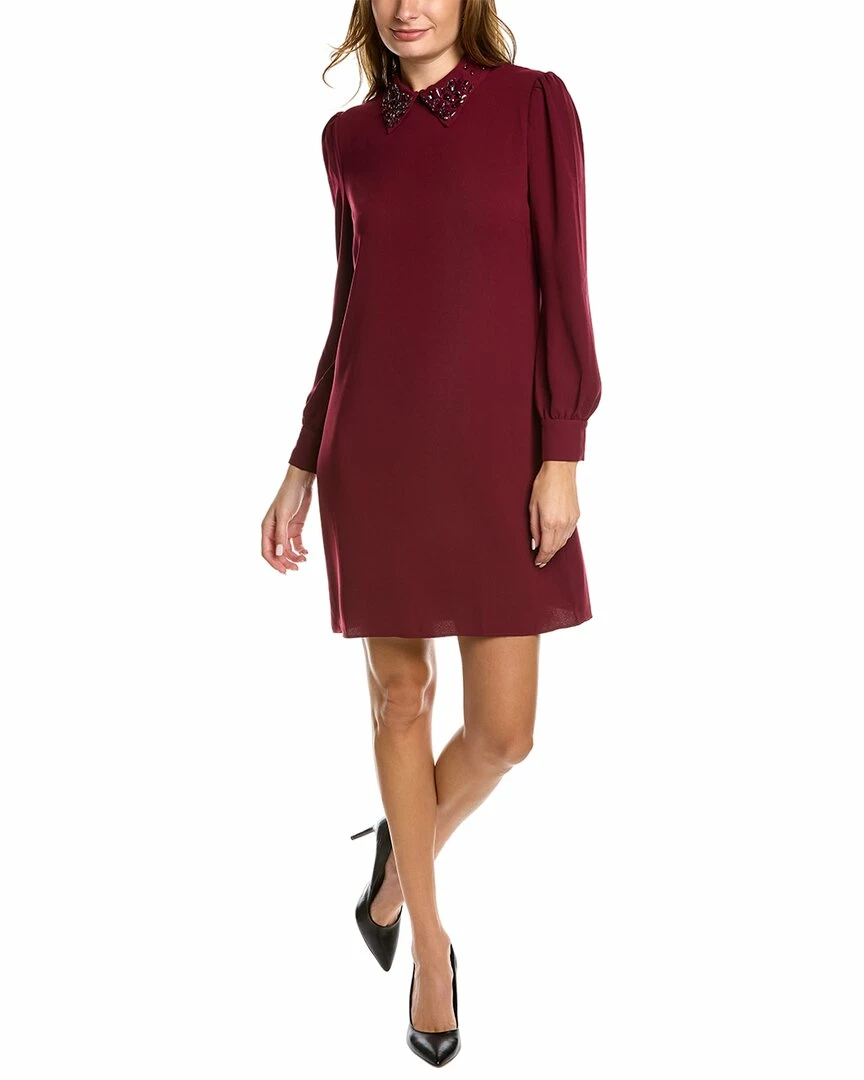 - Gaudin Shift Dress In Vino With Embellished Collar, Blouson Sleeves, And Puff Shoulders