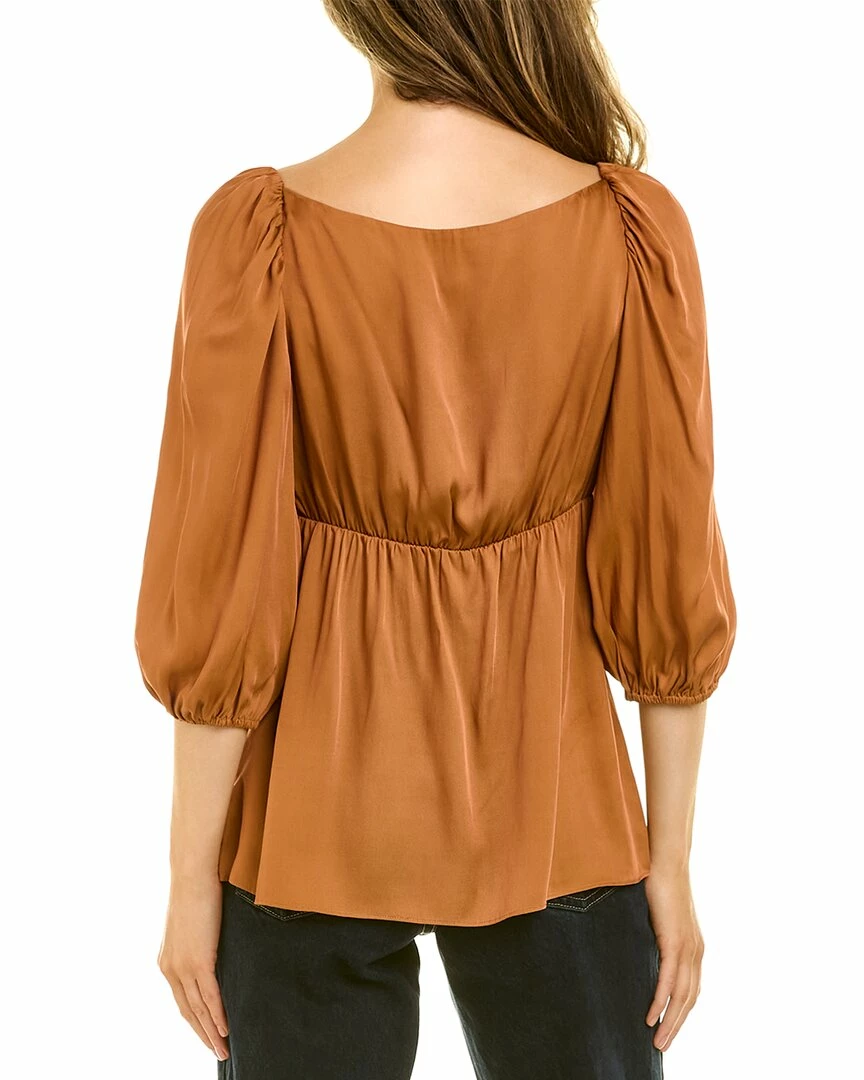 - Impressives Silk-Blend Top In Nutmeg With Surplice Neckline And Elbow-Length Puff Sleeves