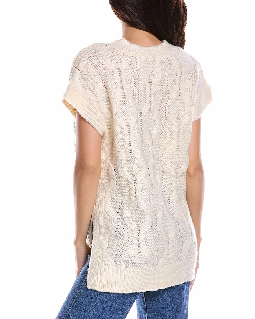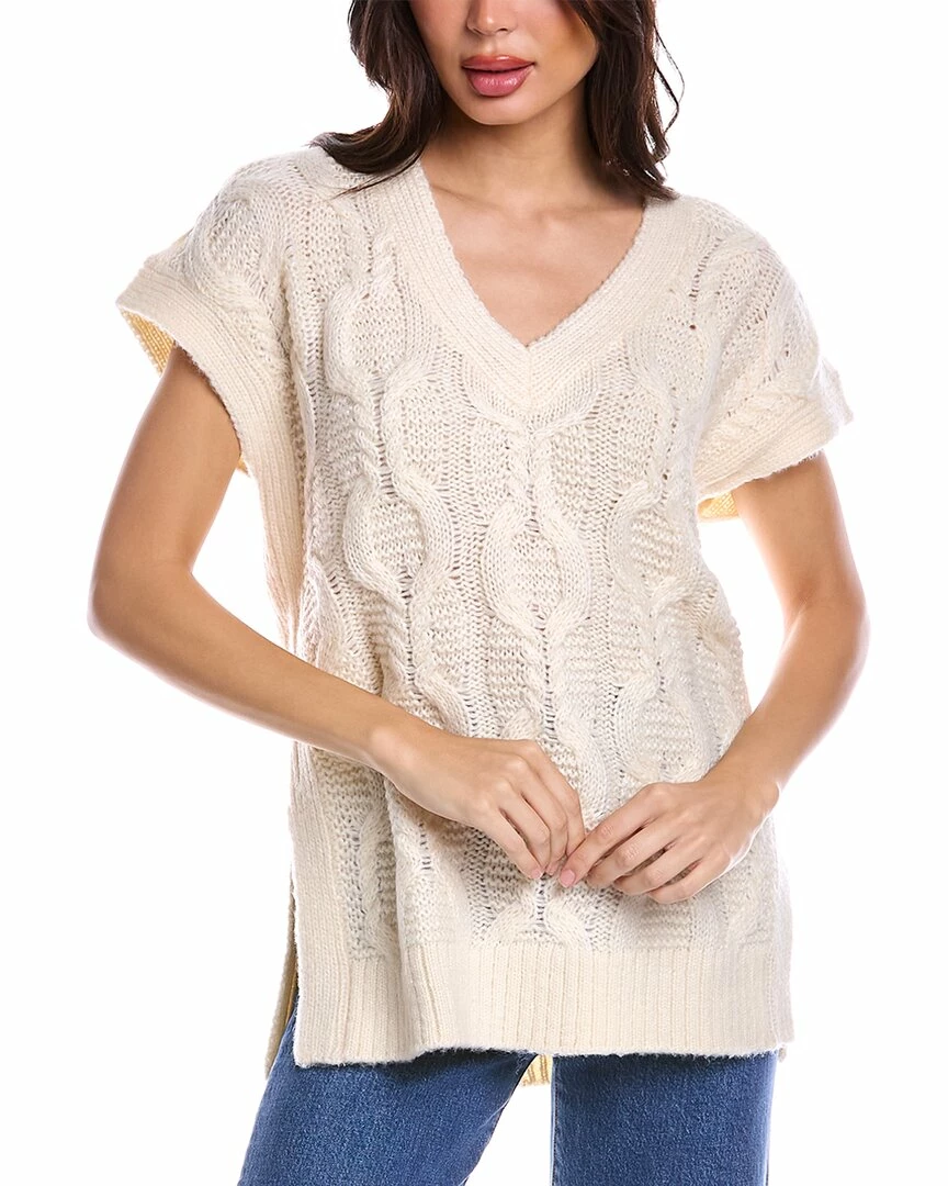 - Lexington Wool-Blend Vest In Ecru With Textured Knit, V-Neck And Ribbed Trim