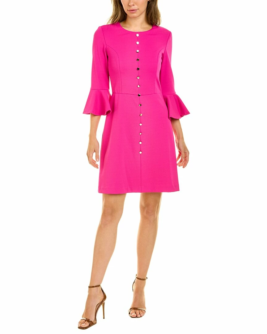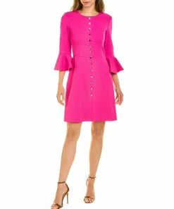 - Mirana Mini Dress In Brilliant Fuchsia With Faux Button Front And Bell-Sleeves