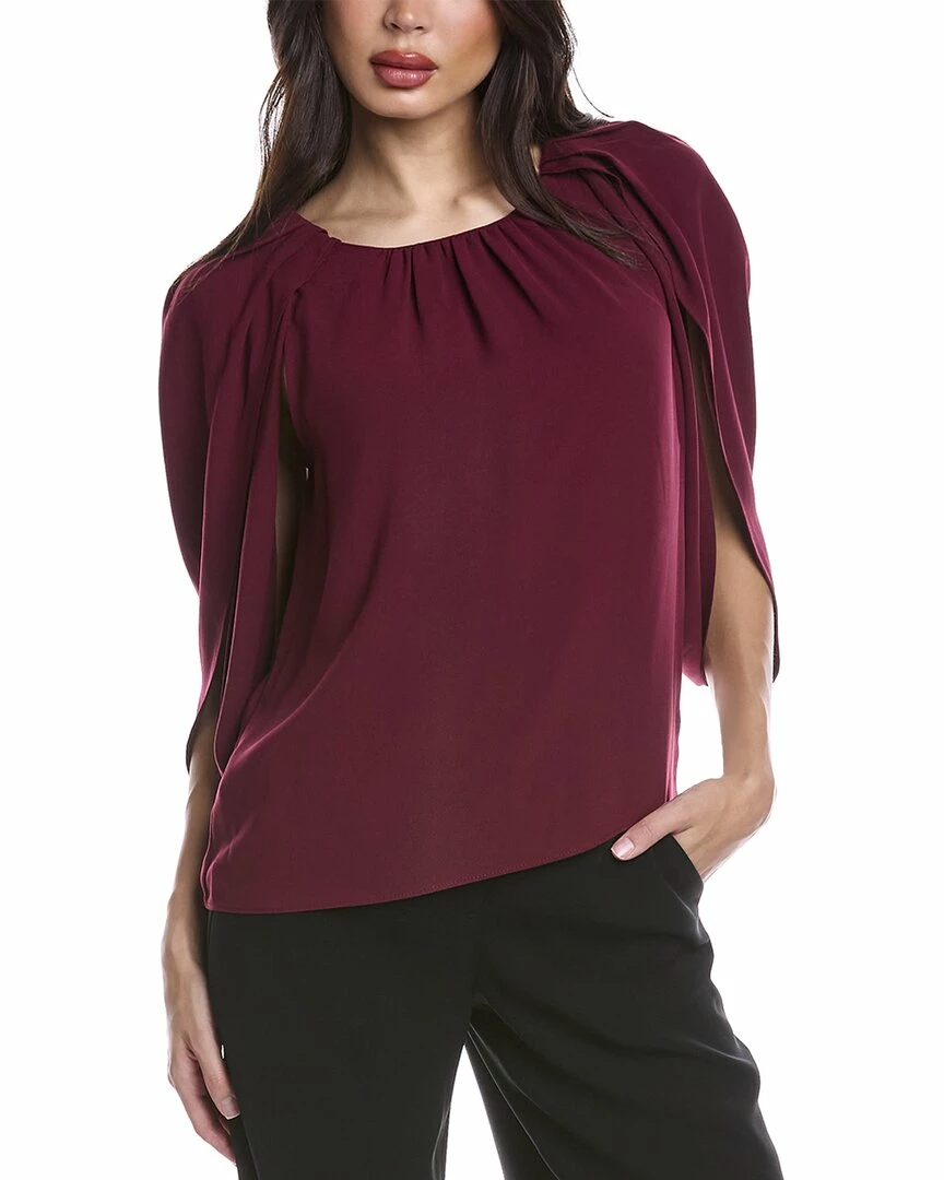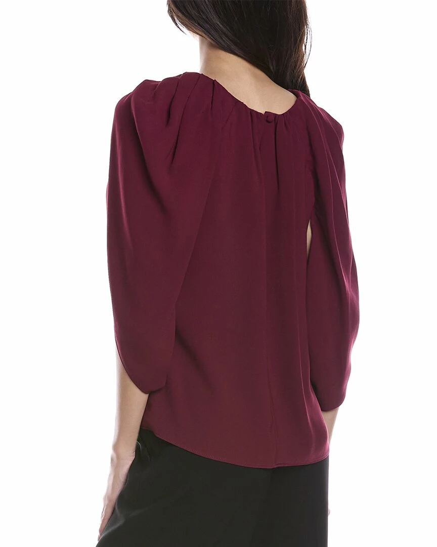 - Nora Top In Vin With Pleated Detailing And Split Cape Sleeves