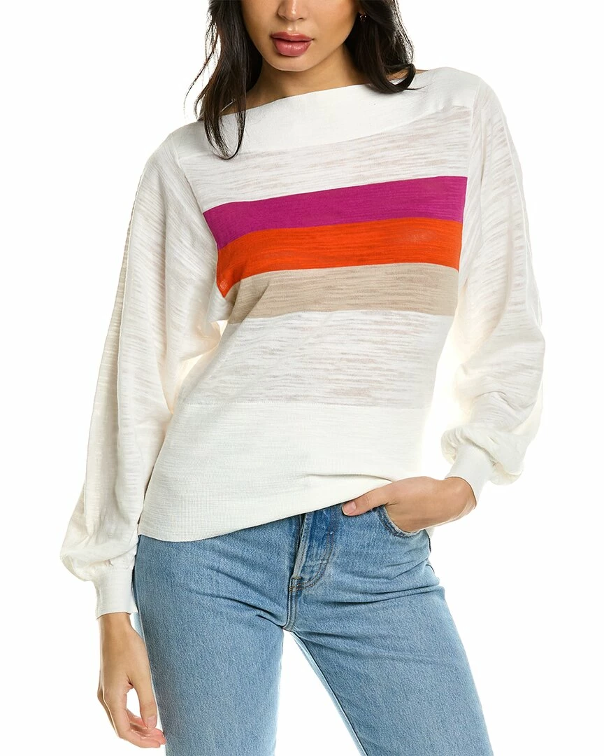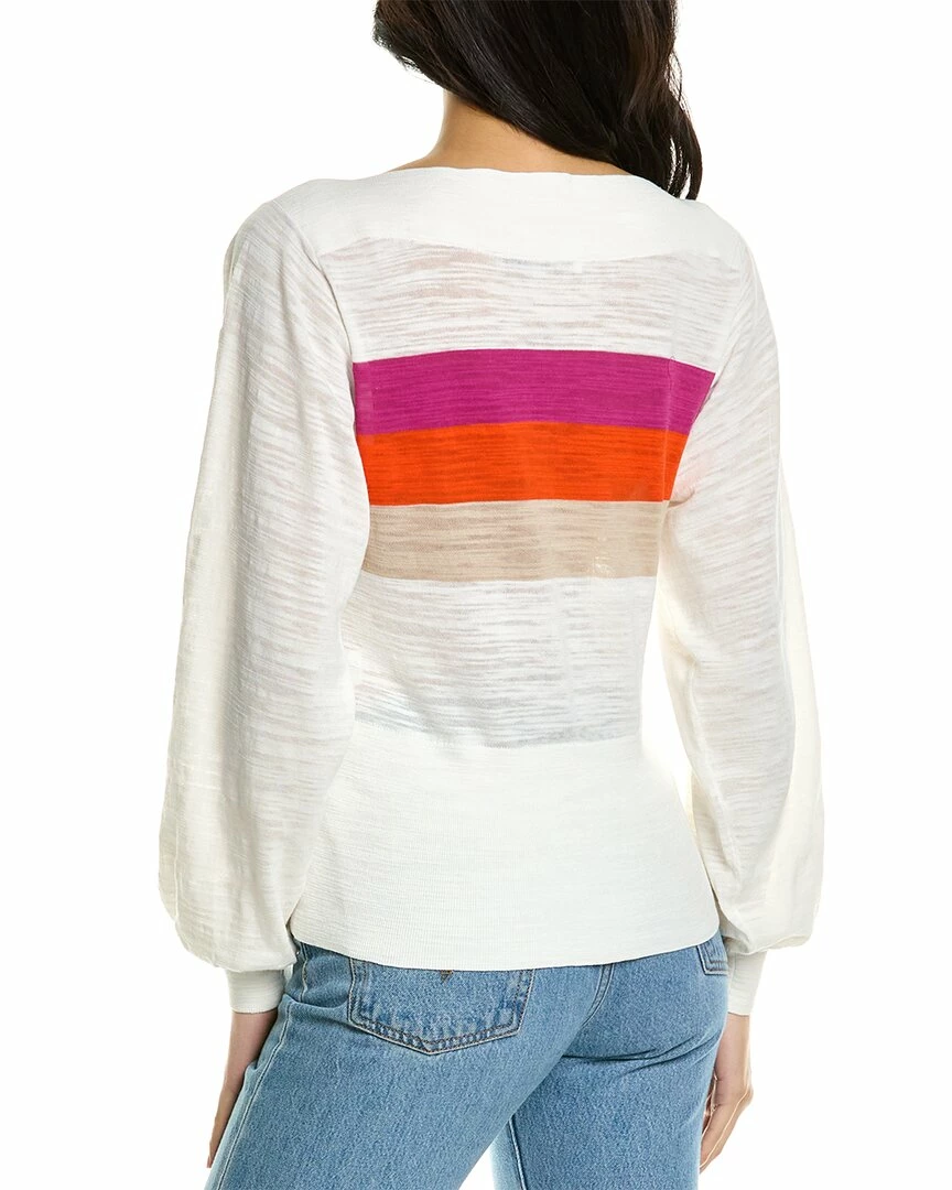 - Ramona Pullover In Whitewash Multicolor With Balloon Sleeves And Ribbed Trim