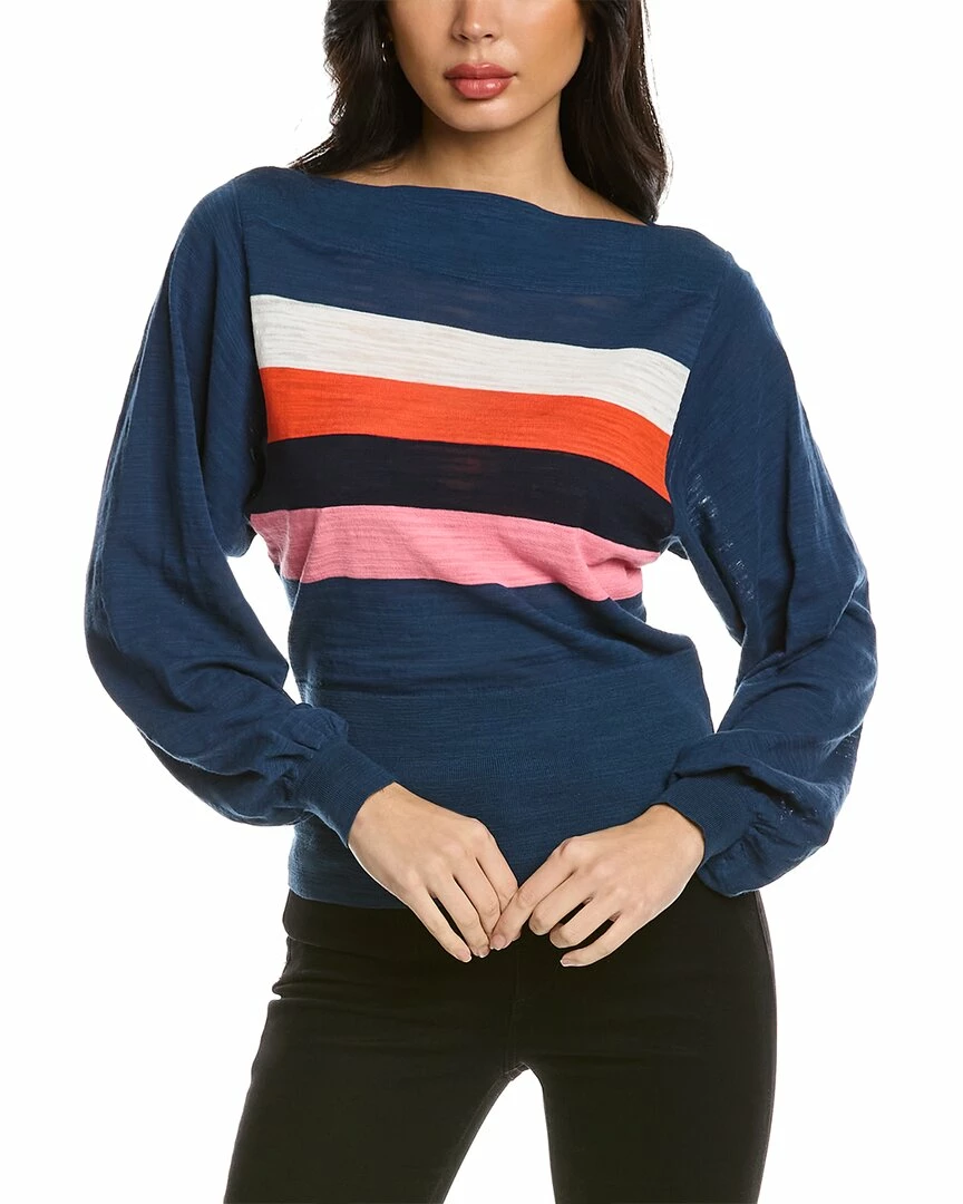 - Ramona Pullover In Multicolor With Balloon Sleeves And Ribbed Trim