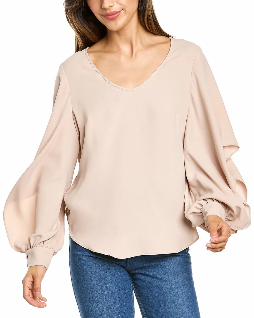 - Rejoice Top In Flawless Beige With Scoop Neck, Slit Sleeves, And Button Cuffs