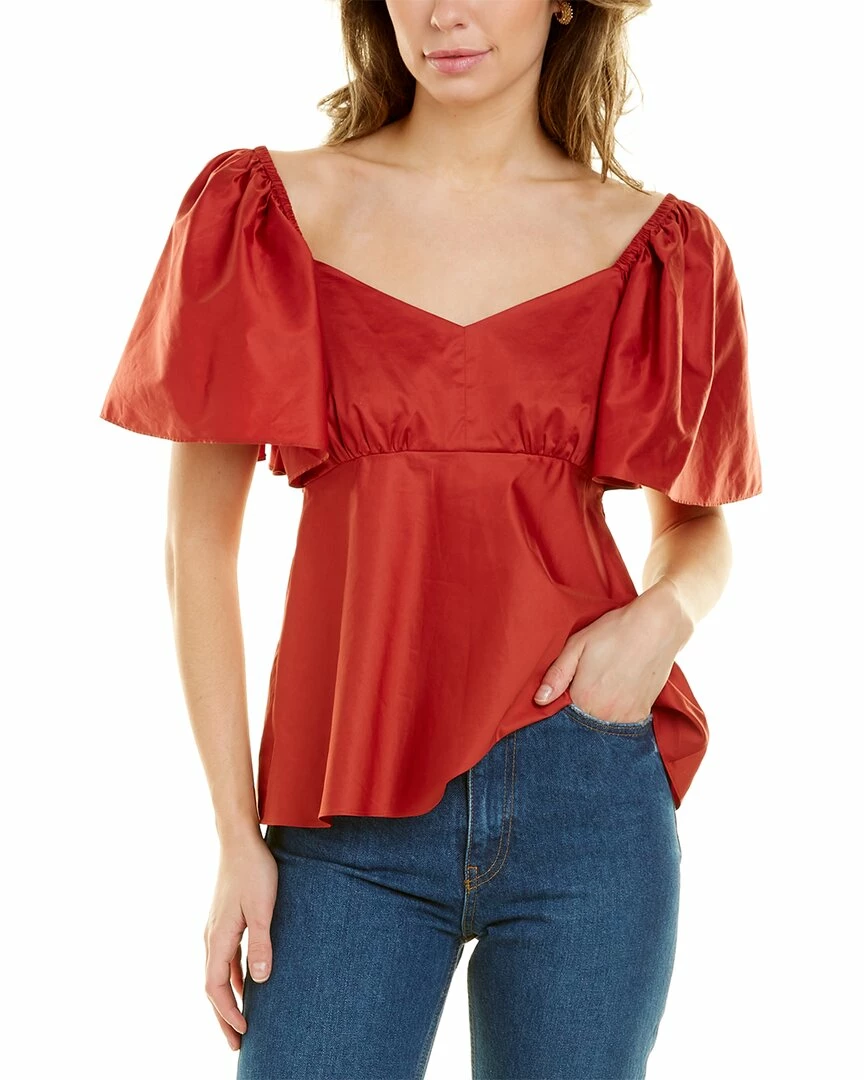 - Sagan Top In Lobster With Oversized Flutter Sleeves And High Peplum Waist
