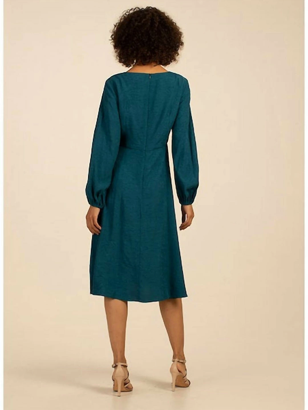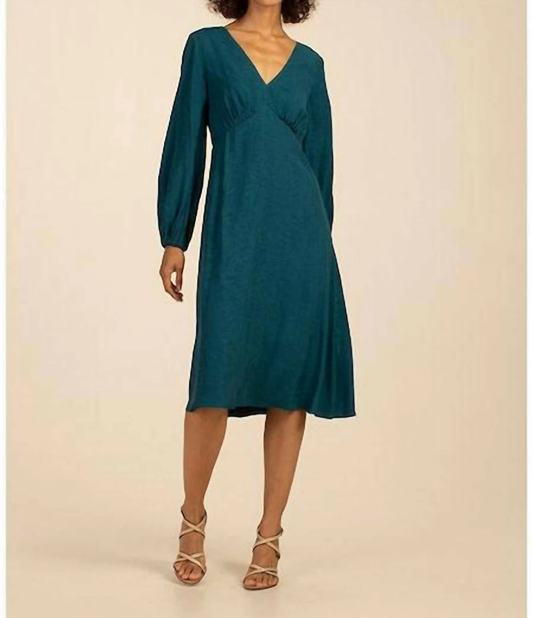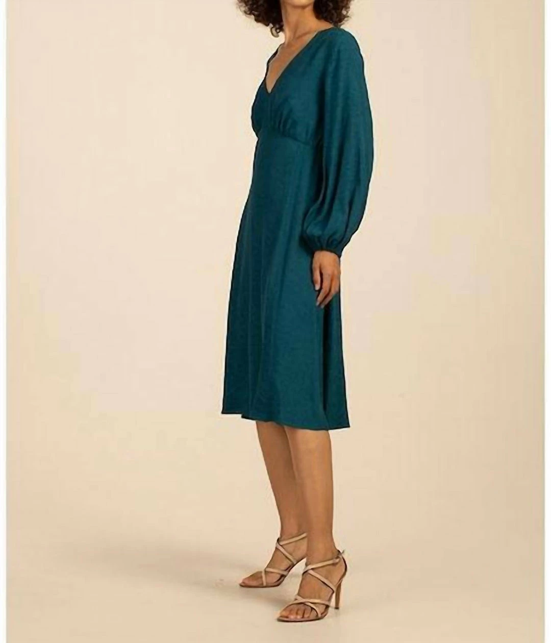 The Shanta dress from Trina Turk features an A-line silhouette with a gathered bust and long blouson sleeves. Flowing jacquard satin elevates the look.V-neckLong sleevesConcealed back zip closure100% viscoseDry cleanMade in USASIZE & FITAbout 46″ from shoulder to hemModel measurements – 5’10” tallModel is wearing a US size 4