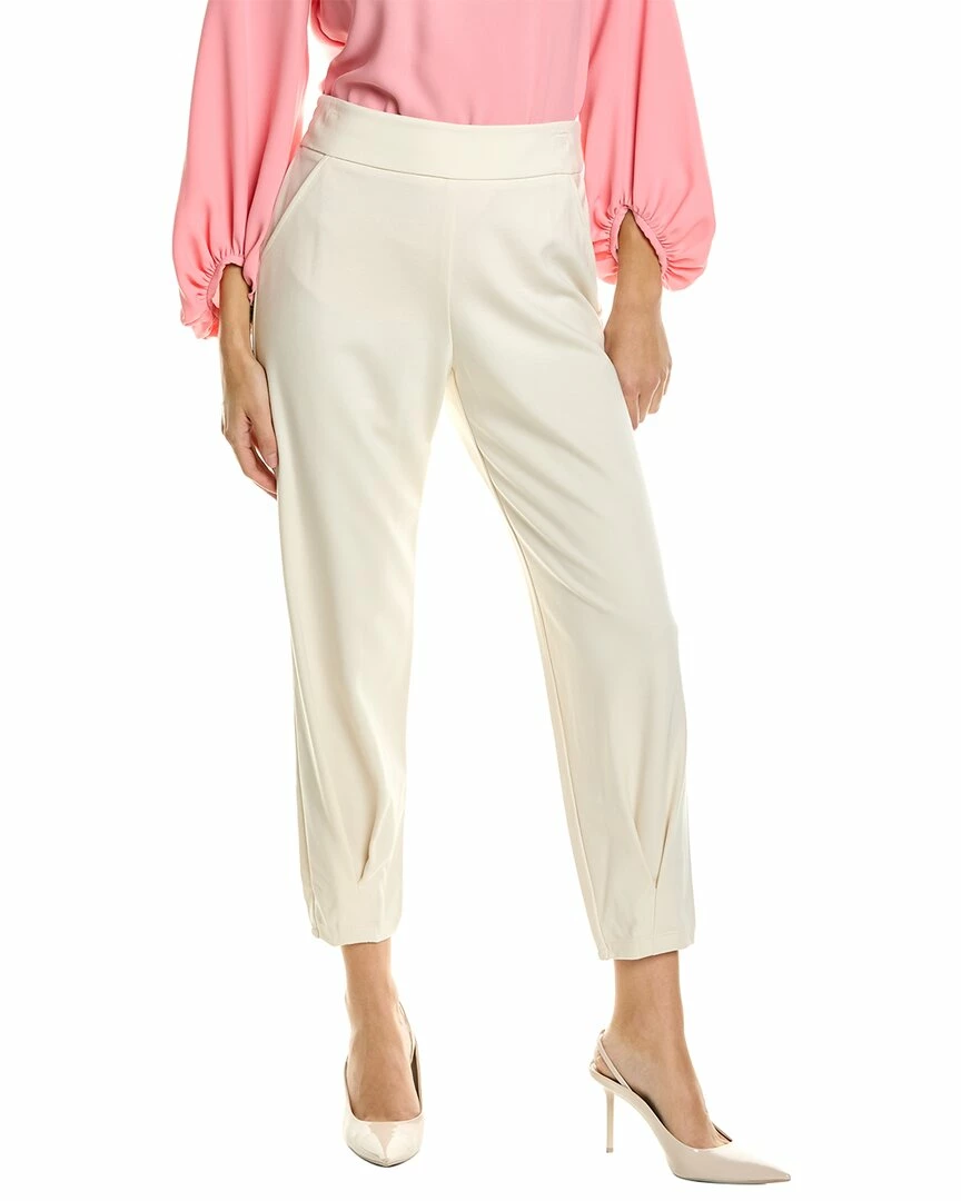 - Smoke Tree Pant In Ivory With Elasticized Back Waist, Side Slash Pockets, Tapered Leg, And Tucked Front Ankles