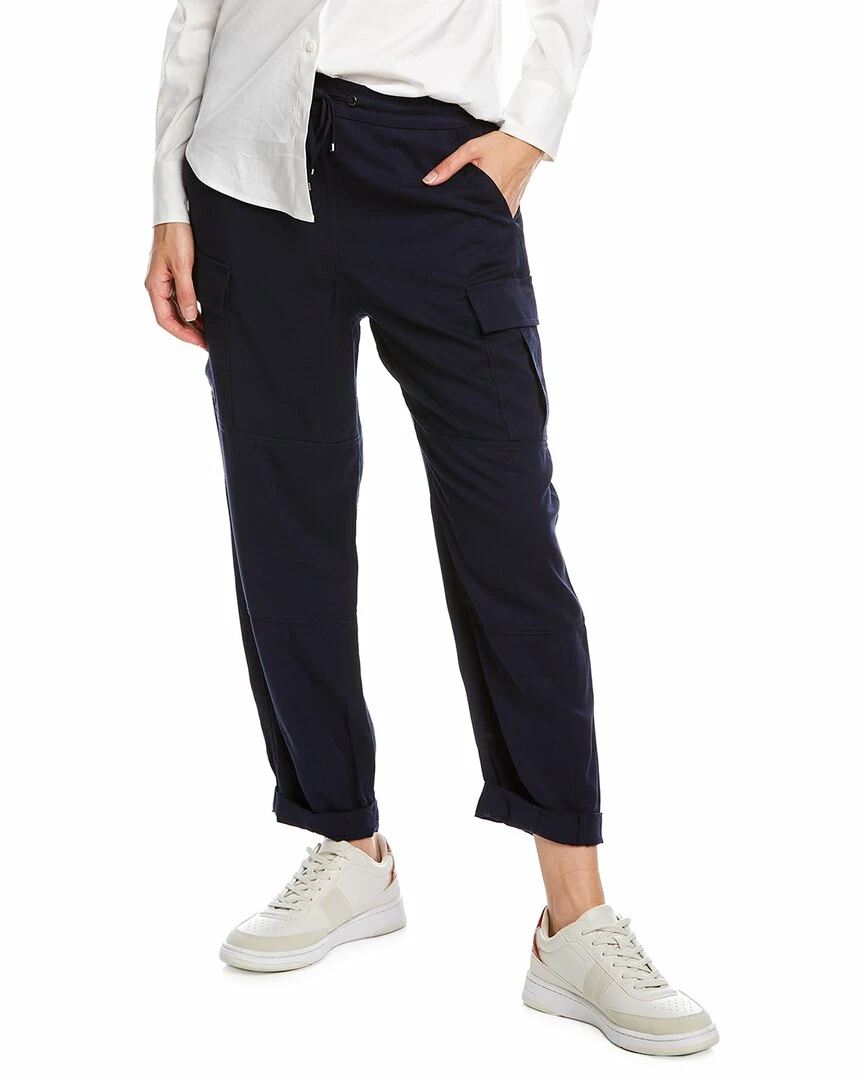 - Take A Break Pant In Indigo With Dual Front Angled Pockets, Dual Side Cargo Pockets, And Elasticized Drawstring Waistband