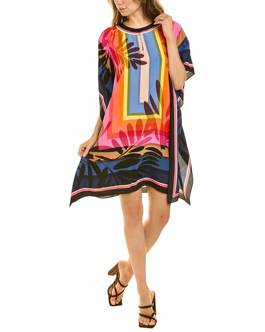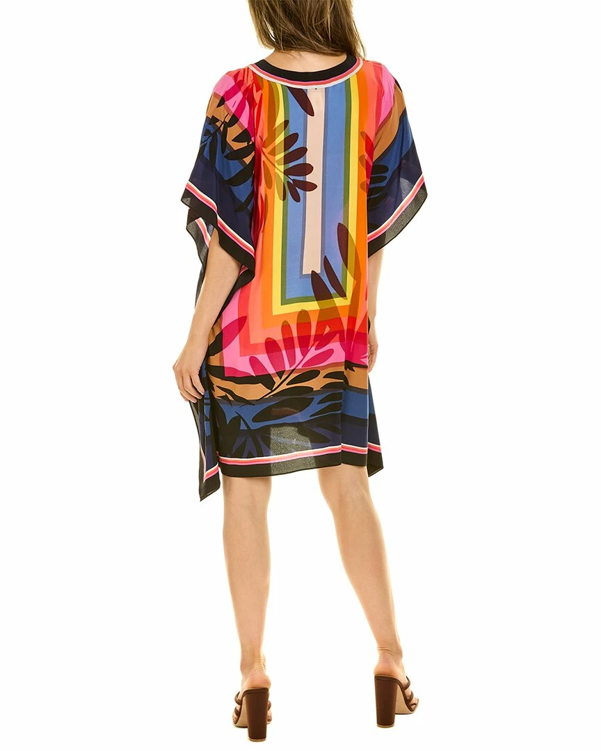 - Theodora Silk Shift Dress In Multicolor With Kaftan Style