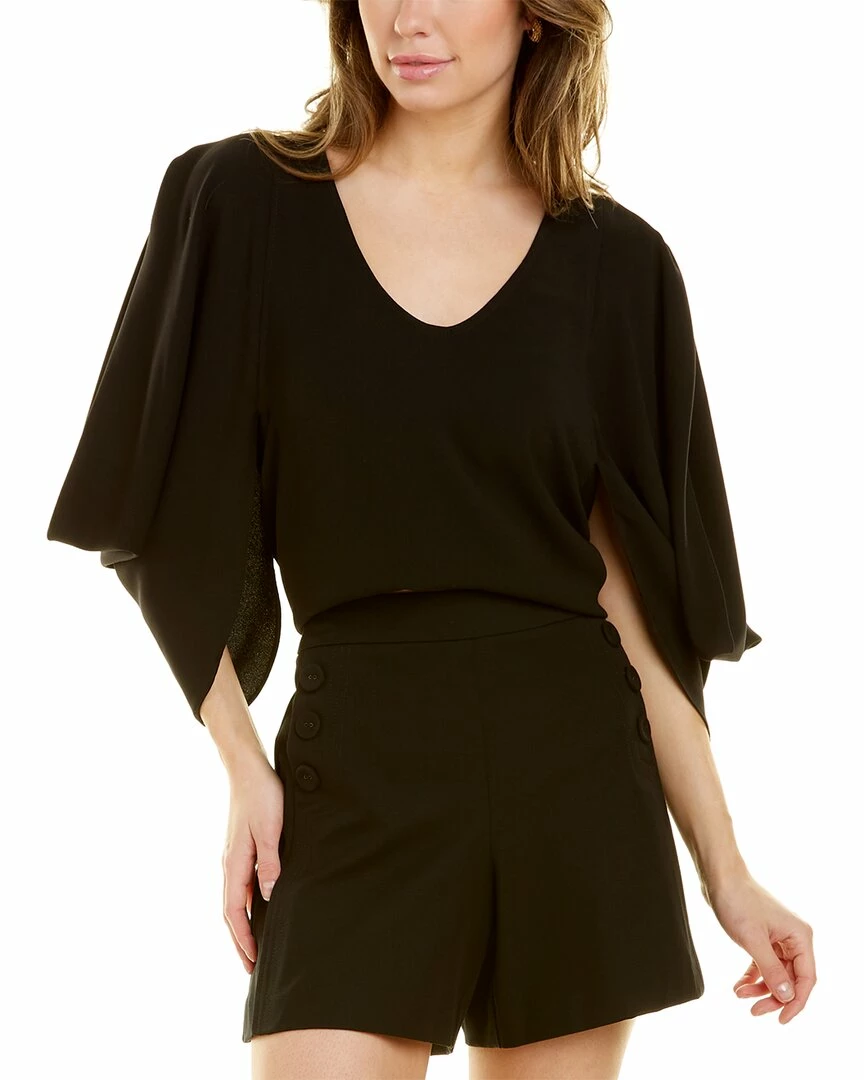 - Universe Top In Black With Satin Back Crepe Design And Wide Split Sleeves