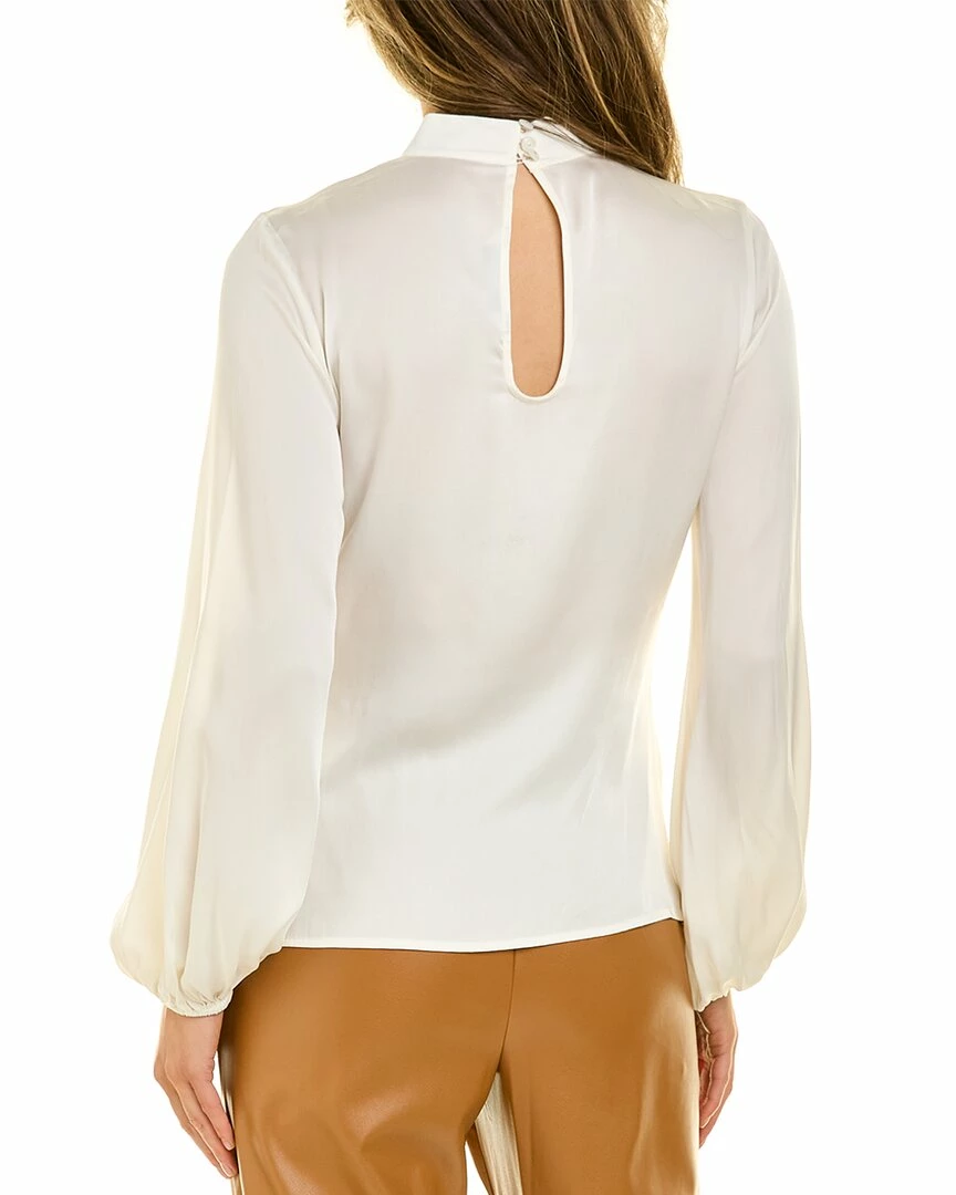 - Willow Silk-Blend Top In Whitewash With Shirred Mock Neck, Elasticized Cuffs And Crossover Front Hem
